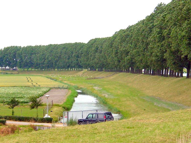 Van de Avenhorner molens is na 370 jaar weinig meer terug te vinden. Alleen de zeer brede onderdijk zou erop kunnen duiden dat hier iets gestaan heeft. Foto 9 juli 2006.