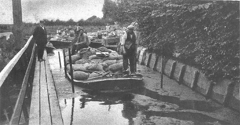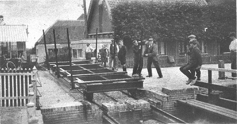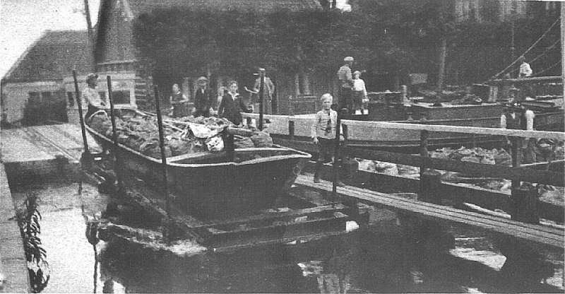 De electrisch voortbewogen overhaal haalt de schuitjes uit de eene gracht en ....